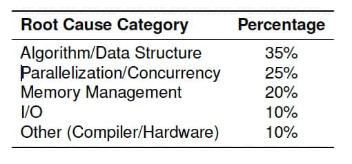 In most cases, a minor issue is resolved by just 10 to 20 lines of code, which can take weeks to find. And the experience level of developers also plays a role: senior and expert engineers introduce fewer performance bugs because they’ve learned how to avoid the traps before stepping into them.